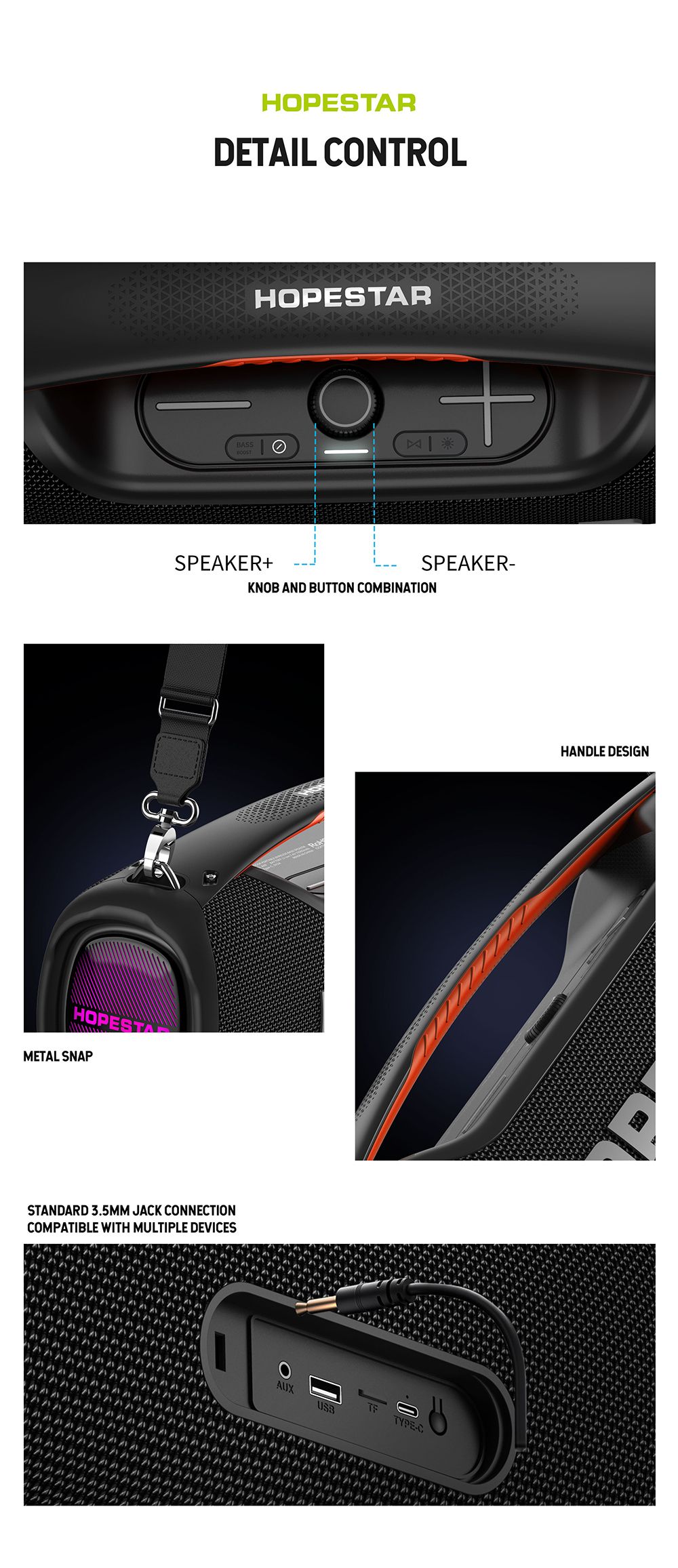 Hopestar A60 100W High Power Portable Bluetooth Speaker Outdoor Heavy Bass Subwoofer for Gaming Parties