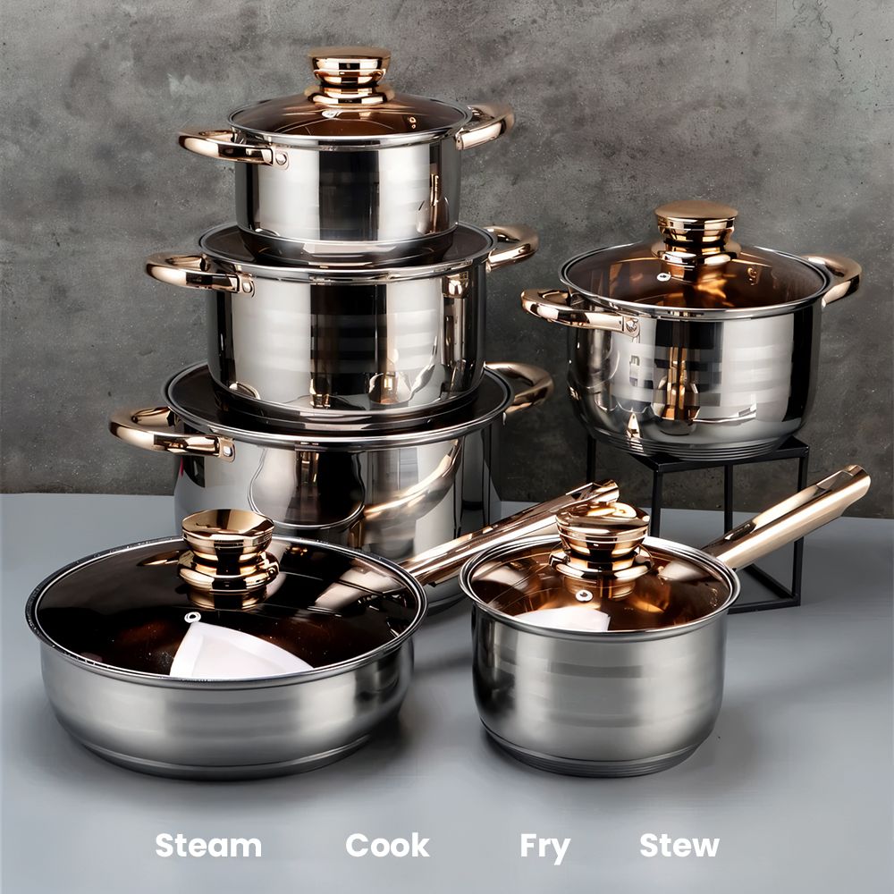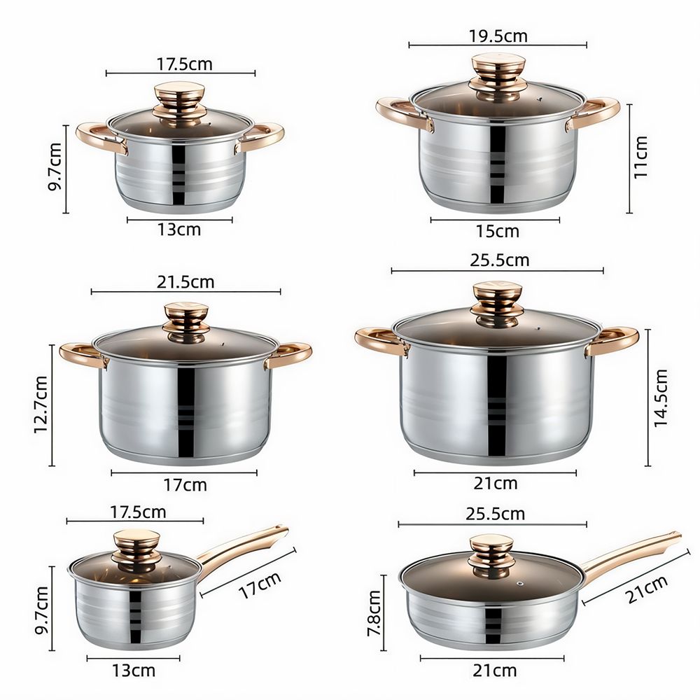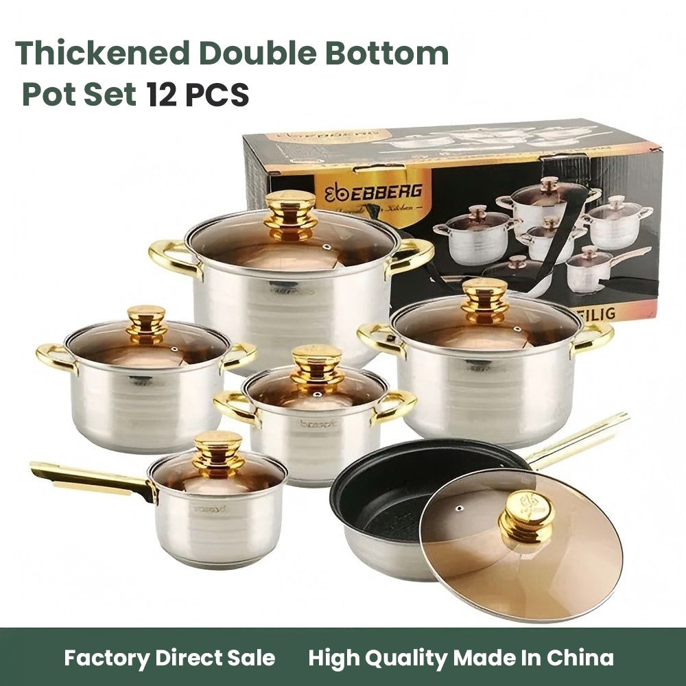 High Quality Stainless Steel Cookware Set Thick Double Bottom Pot Set 12 Pcs