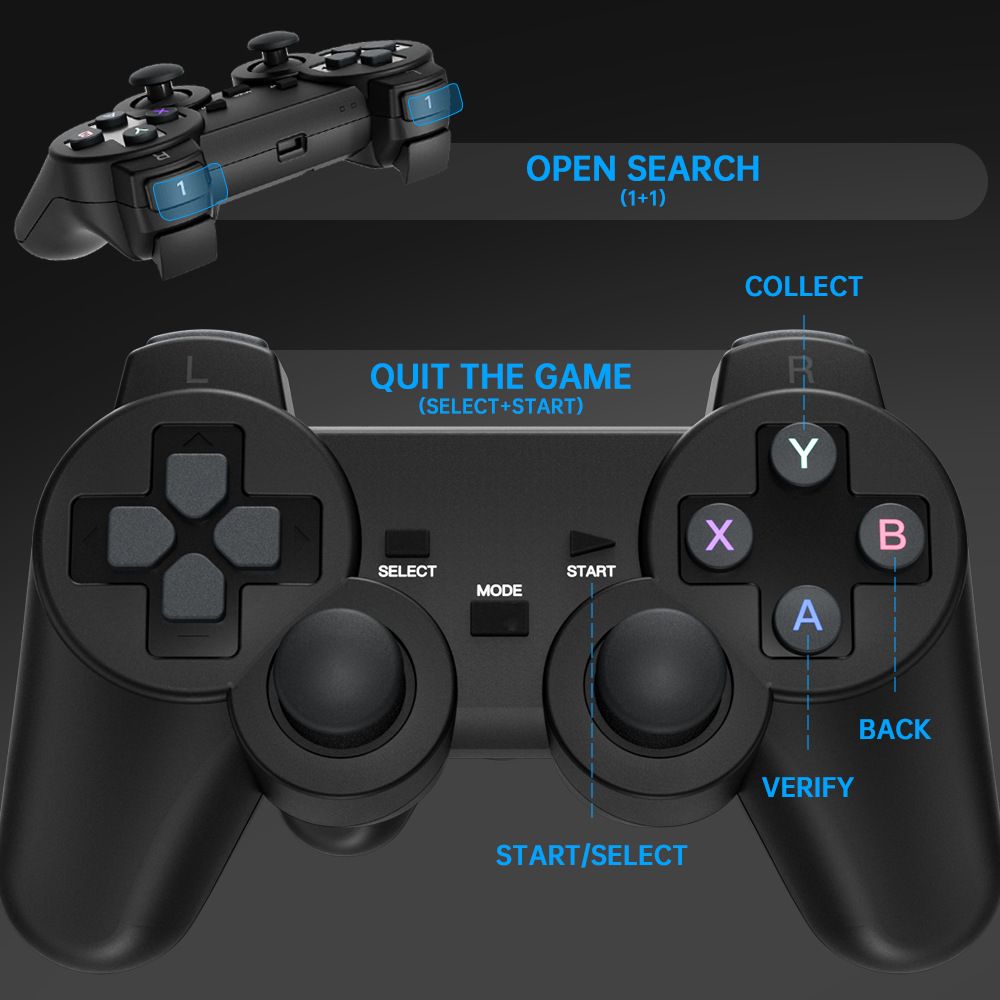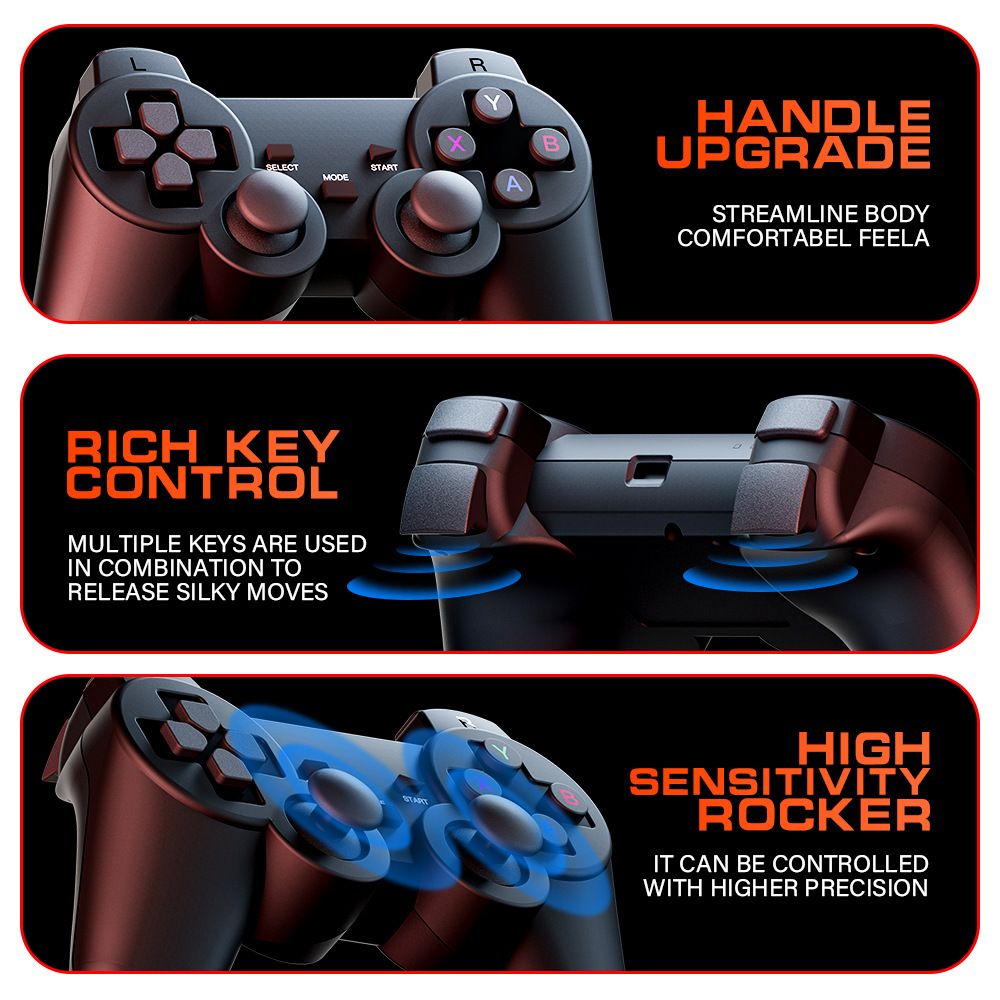 - 【Bulit in 35000+ Classic Games:】Mini video game console stick comes with a 128GB TF card, preinstalled 35000+ popular retro arcade games and many game emulators,Supports more than 10 game platform simulators, comes with dual handles, and supports two-player cooperative games.